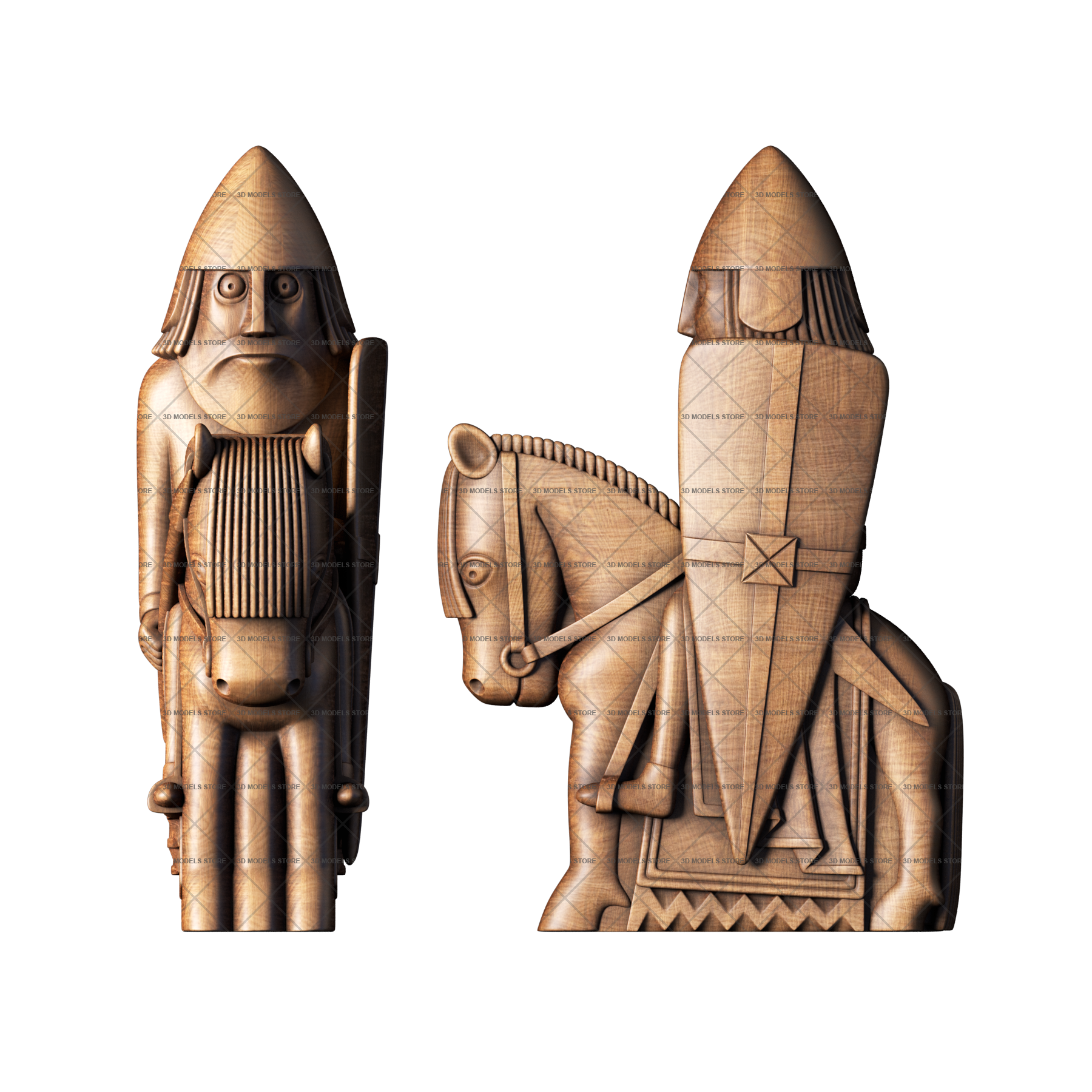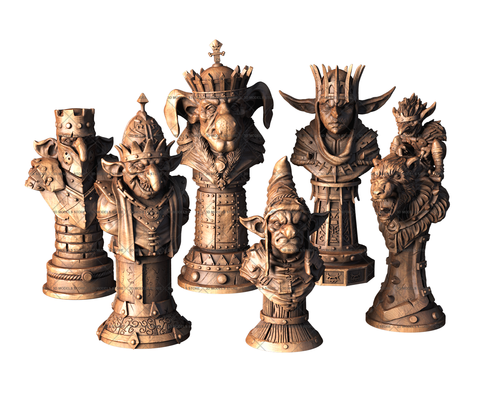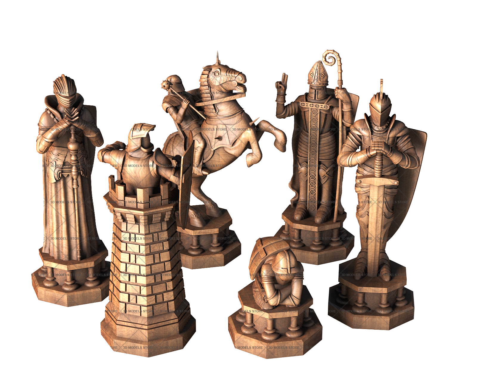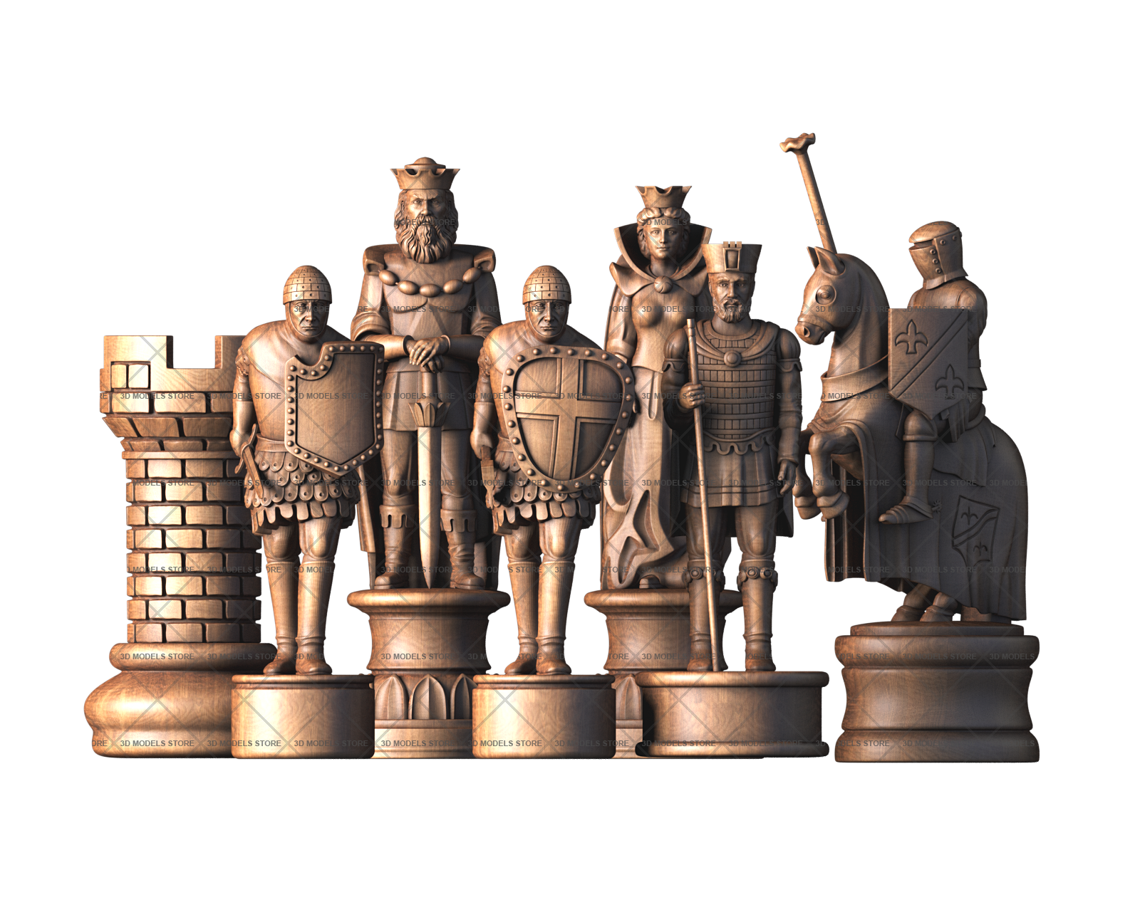 We offer you carved chess 3D (STL) models in different styles from classic to medieval knights, kings, warriors pieces. Each piece is designed in meticulous detail.