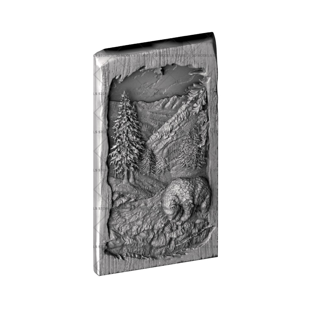 Panel Mountains and bear brlf_stl_0168 - 3d models (stl)