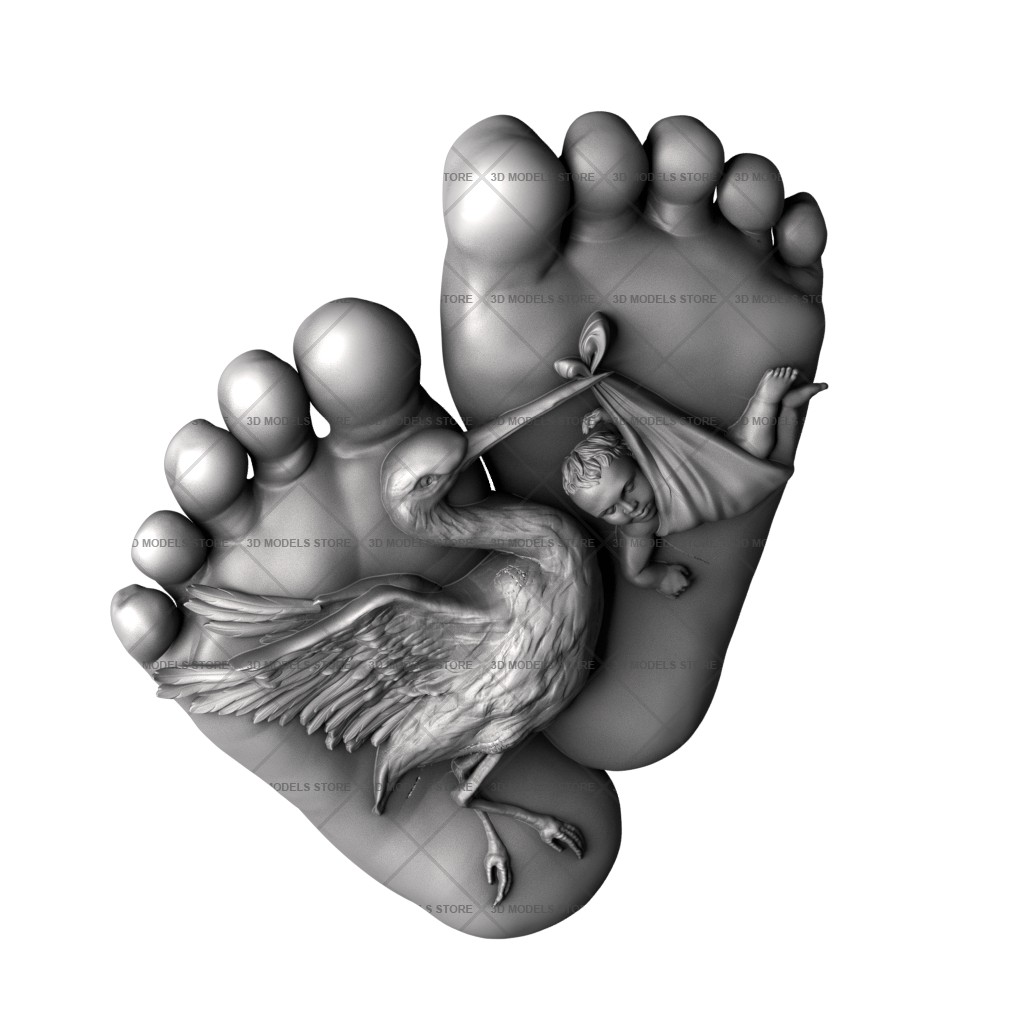 Panel Stork with a baby brlf_stl_0207 - 3d models (stl)